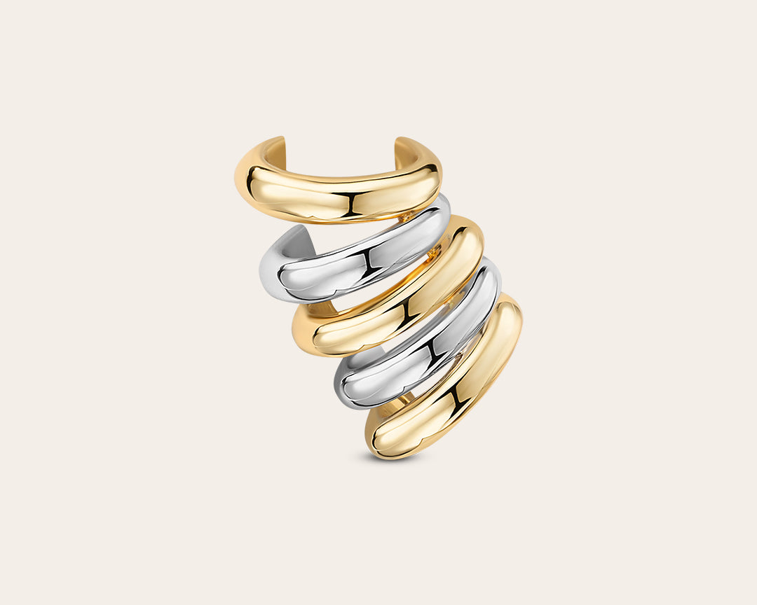 Goldene und silberne Ear Cuff mit mutigem, zweifarbigen Design.