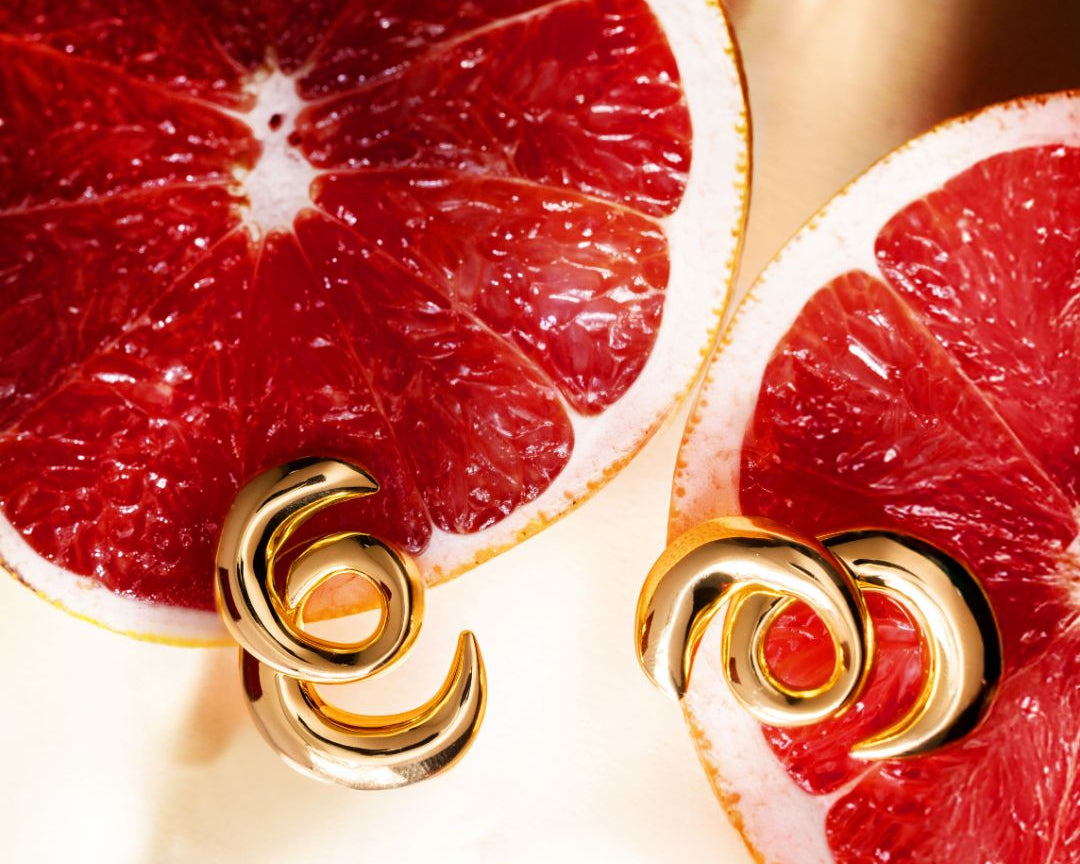 Sie drehen sich wie fließendes Gold und falten sich ineinander zu einer kühnen, skulpturalen Form. Groß, aber nicht schwer. Glänzend, aber niemals übertrieben. Sie folgen den natürlichen Linien deines Gesichts und fangen bei jeder Bewegung das Licht ein. Keine Steine, keine Struktur – nur glattes, fließendes Gold mit einer leisen, dramatischen Präsenz. Ein Stück, das ein wenig vintage, ein wenig modern wirkt und sich vom ersten Moment an vollkommen wie deins anfühlt.