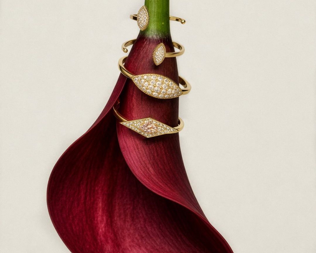 Inspired by bold shapes and modern elegance, the Cleo ring is designed to make a statement. This gold-plated ring features a striking diamond-shaped top, giving it a more angular and edgy look. The geometric silhouette catches the light beautifully, while the surface, fully set with shimmering zirconia stones, adds a refined sparkle that elevates any outfit.