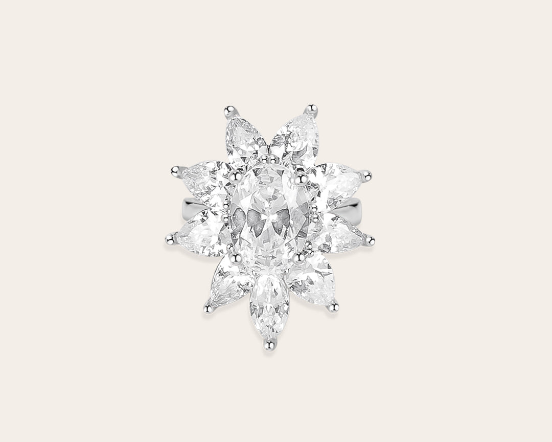 The Isolde ear cuff is a delicate, light-catching ear cuff with a petal-shaped design that brings soft, floral glow and bright, star-like sparkle.