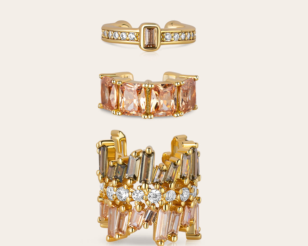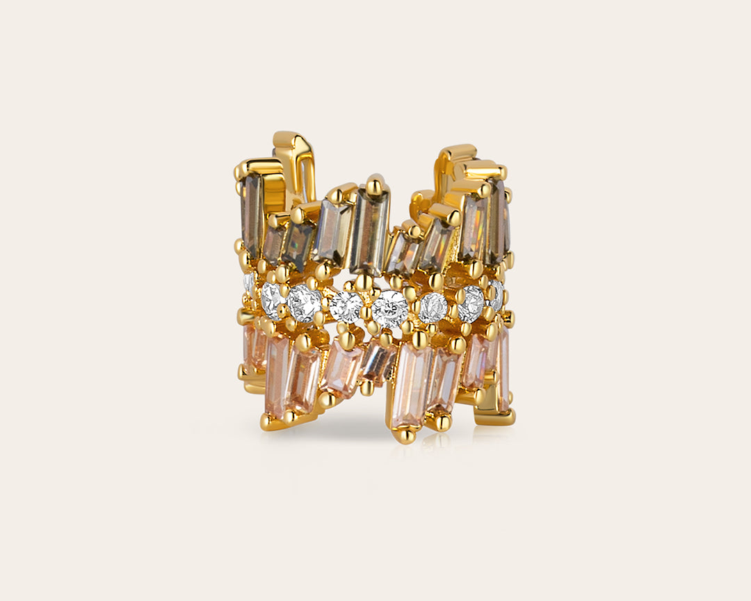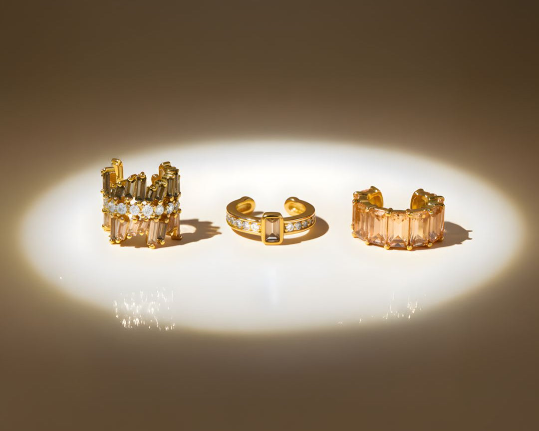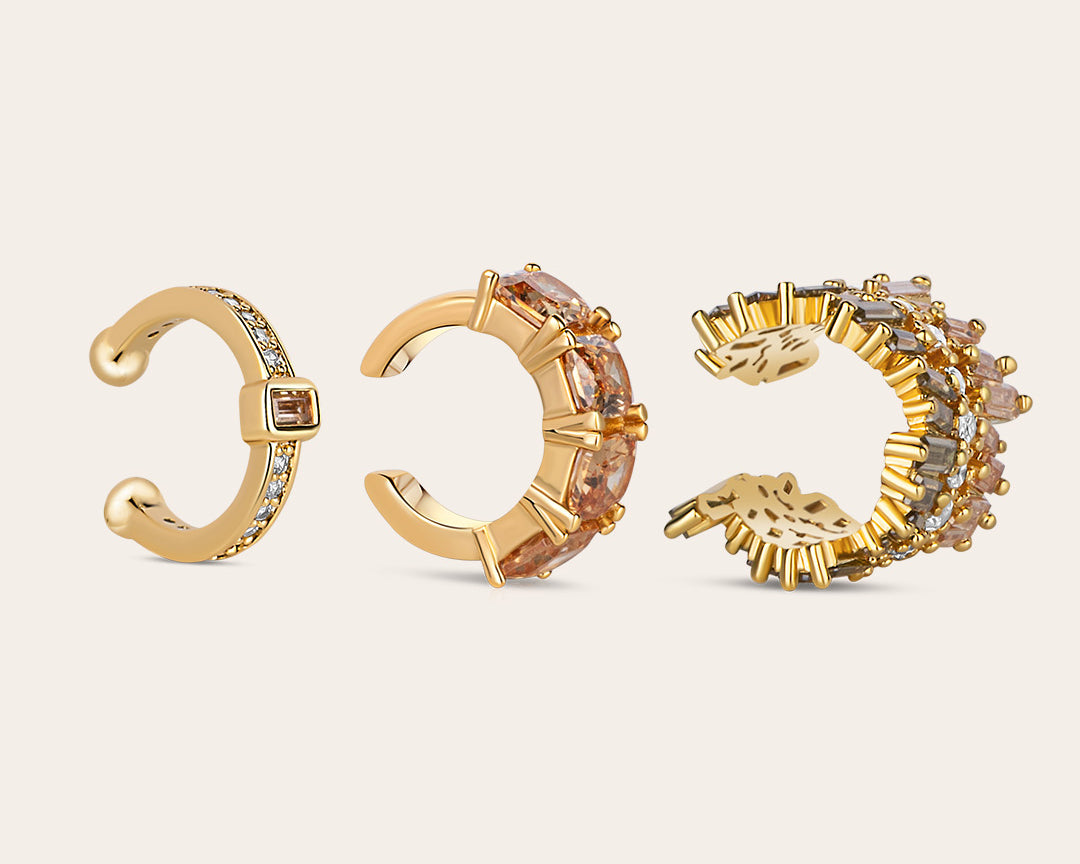 A champagne- and rose-toned ear cuff set that mixes and matches beautifully. Three festive cuffs for an effortless winter glow.