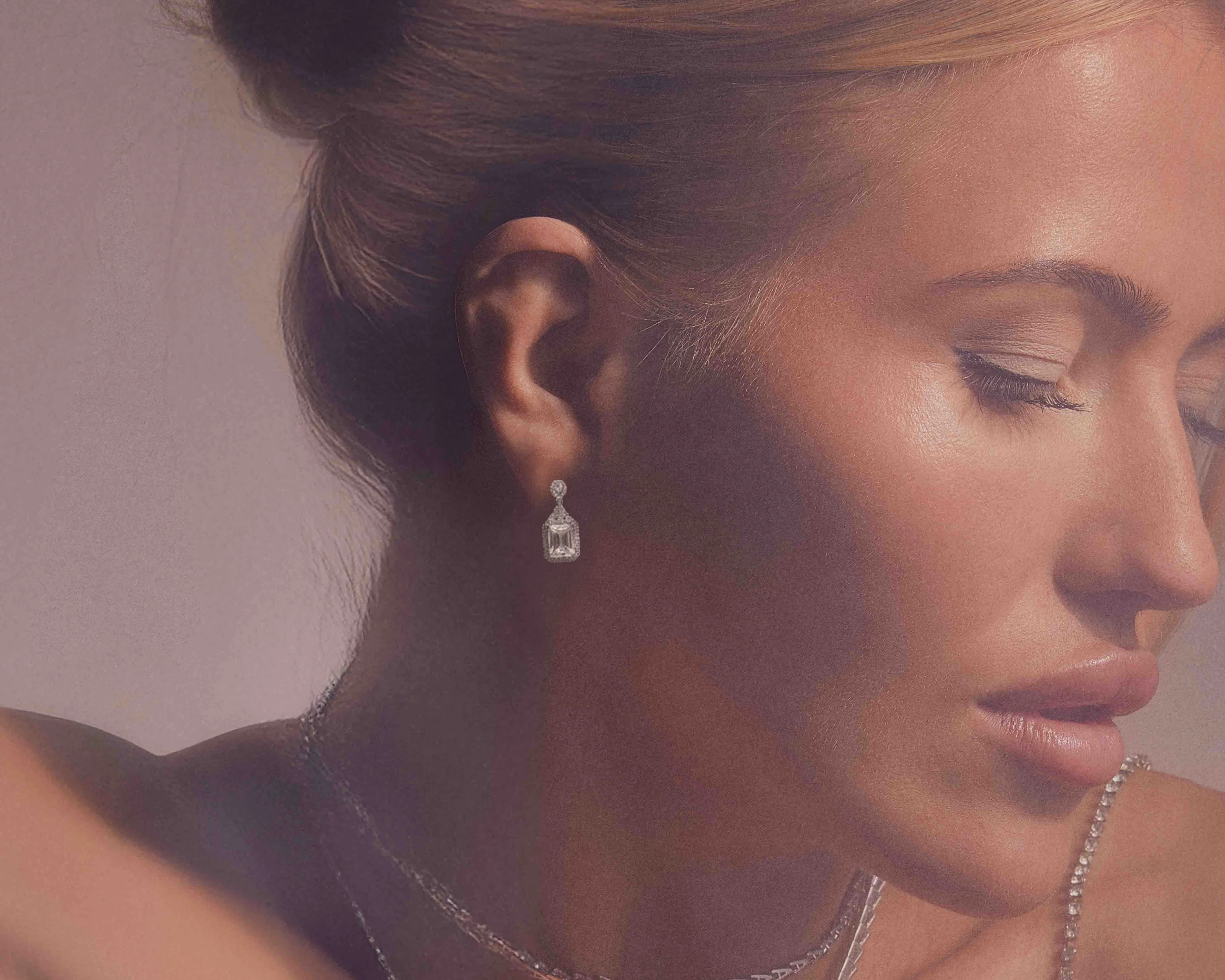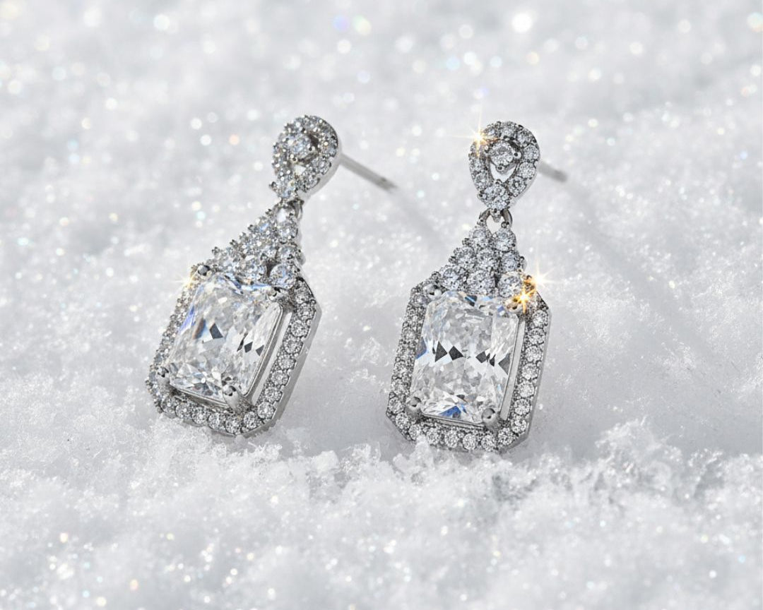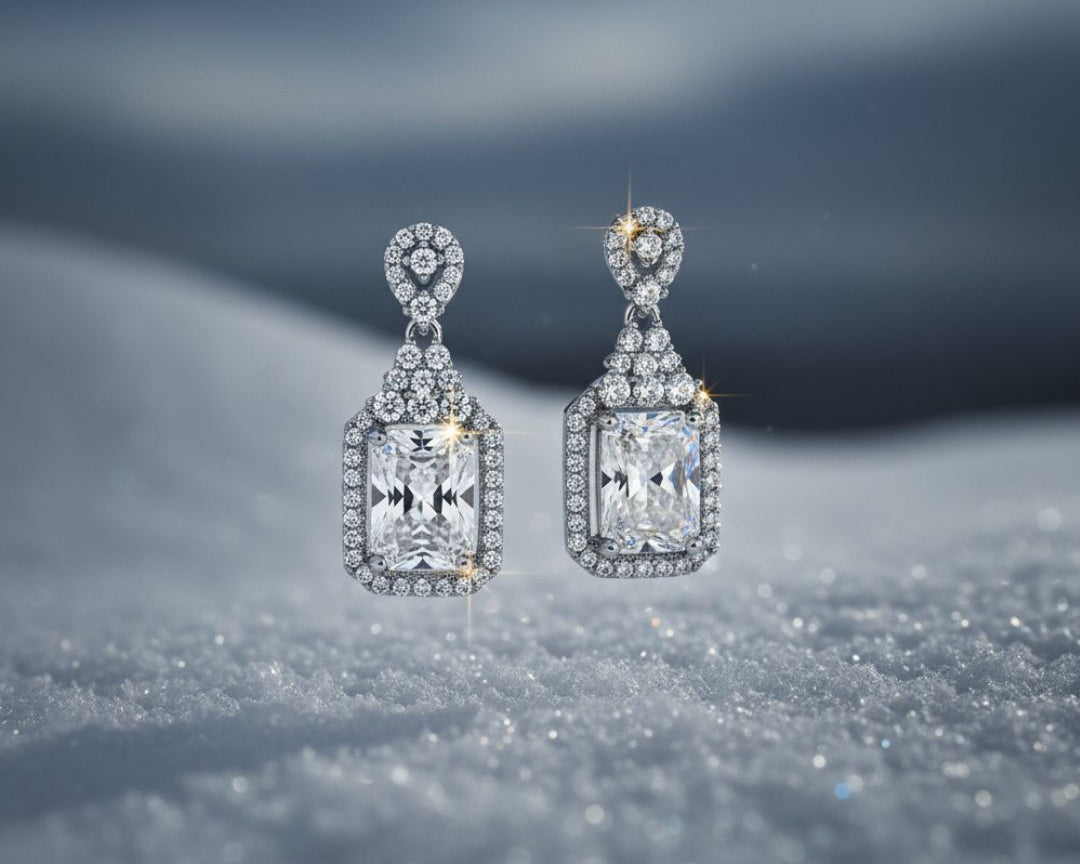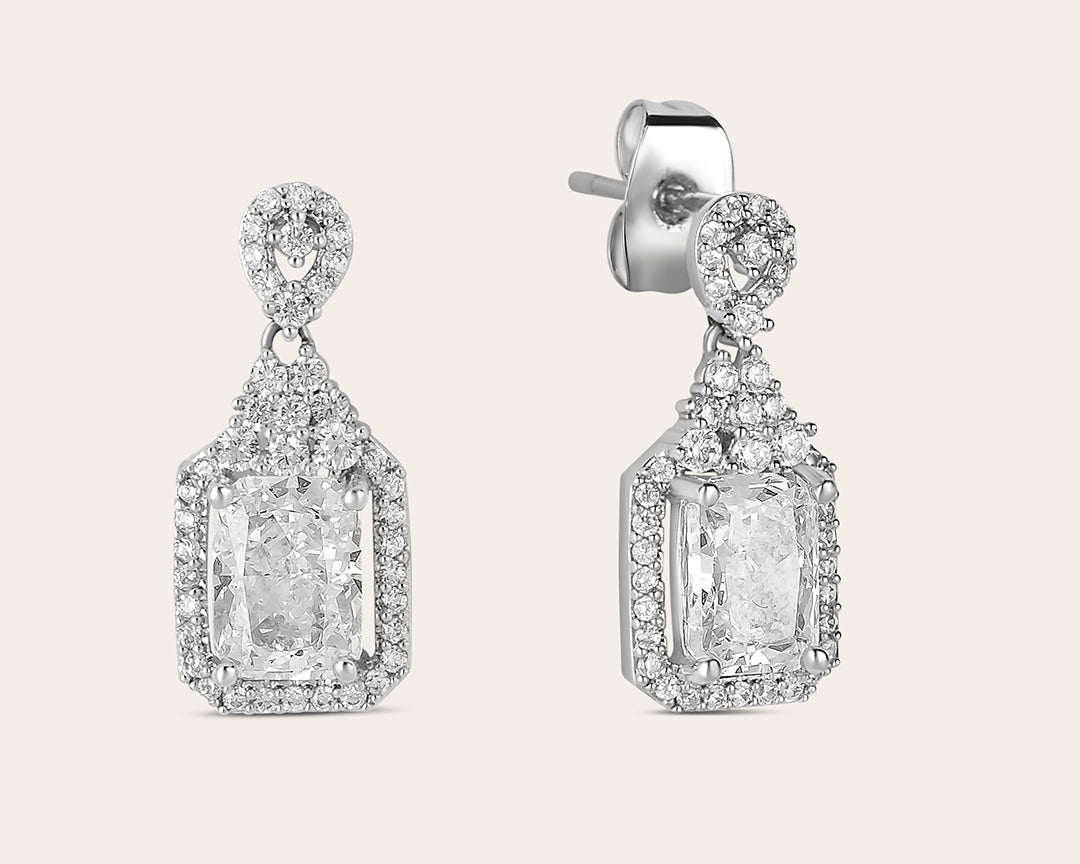 The design features radiant square-cut zirconia stones surrounded by shimmering halos, creating a stunning play of light that catches every eye. Refined yet full of character, they bring a touch of red-carpet energy to any look. Perfect for the Hollywood season, the Sophia earrings are made for moments that call for confidence, sparkle, and a hint of classic allure.