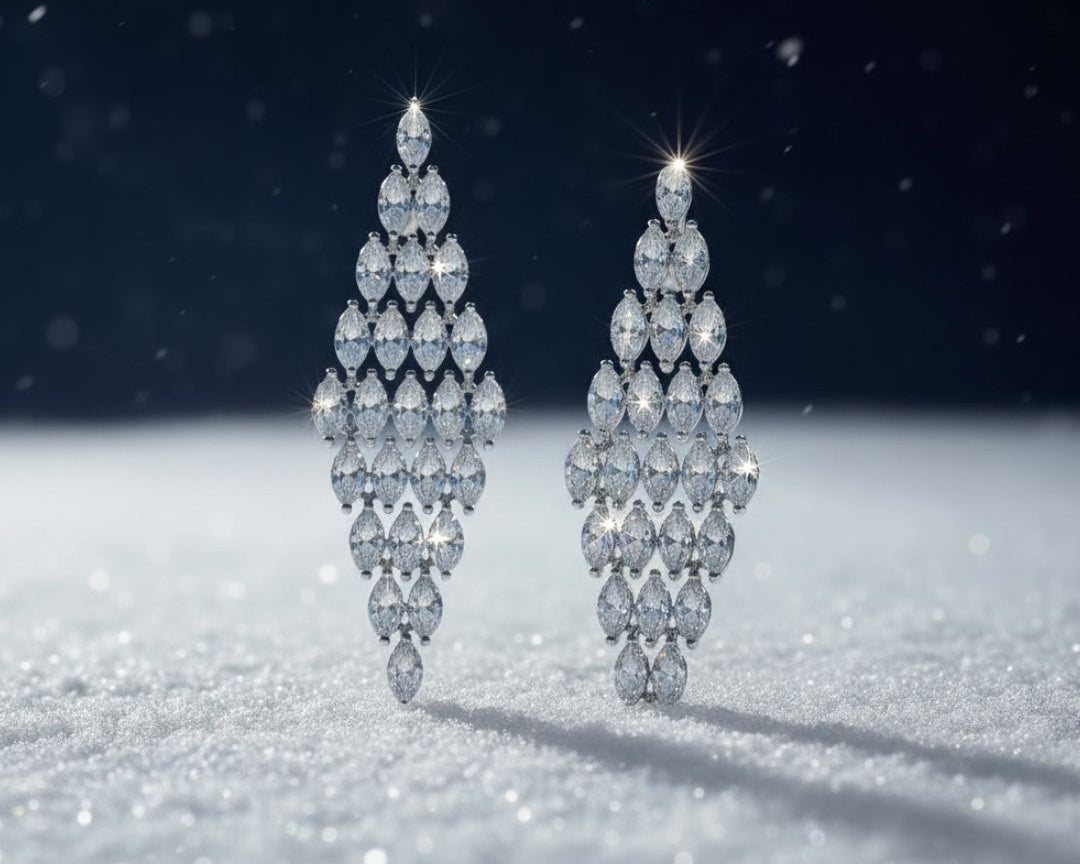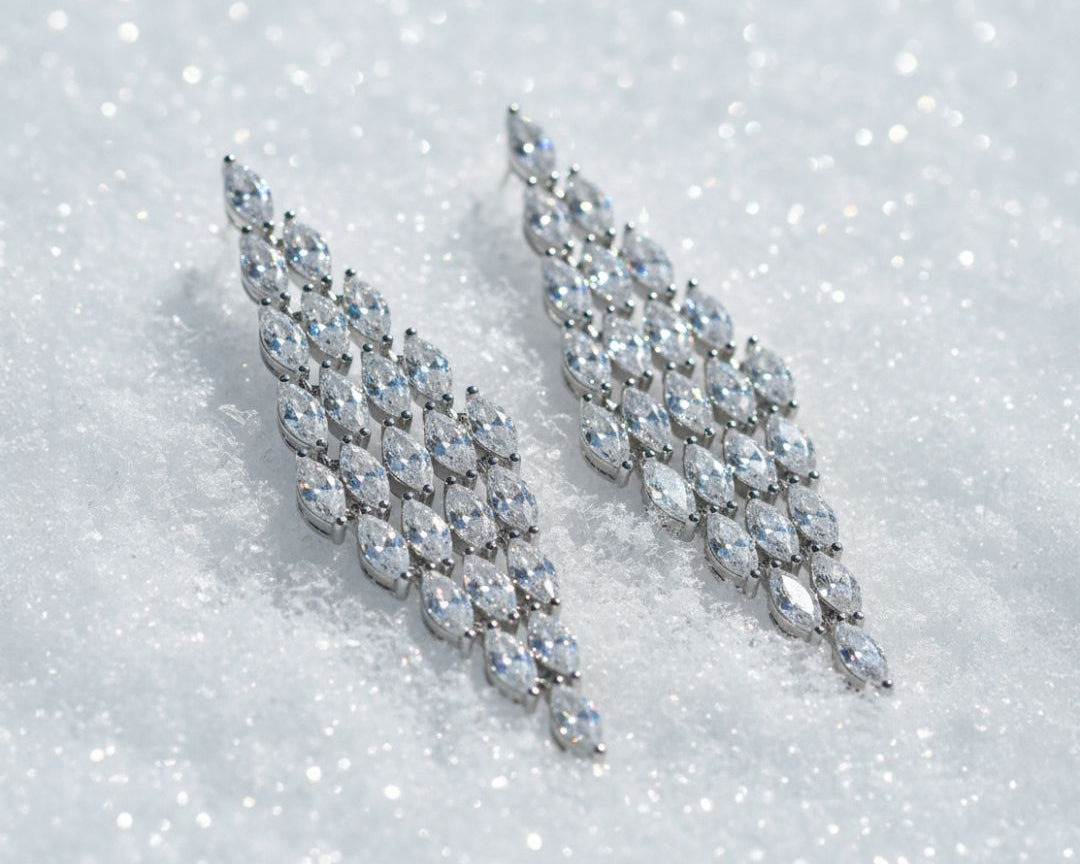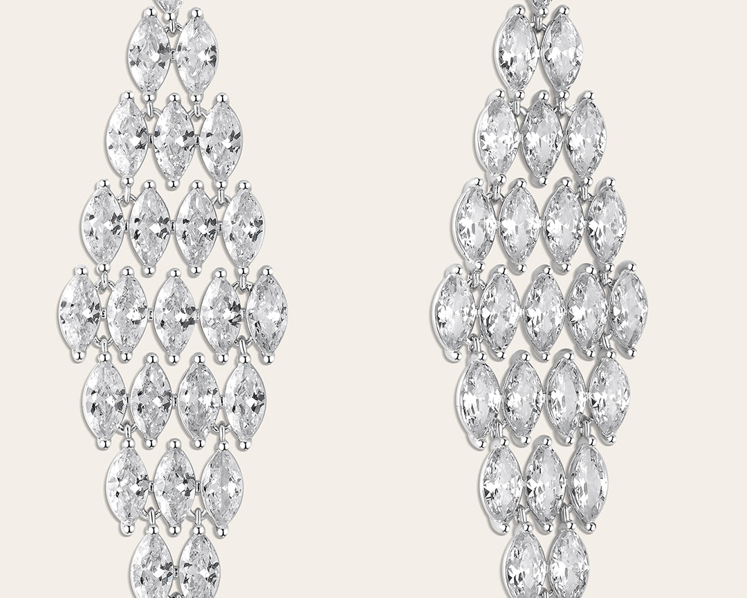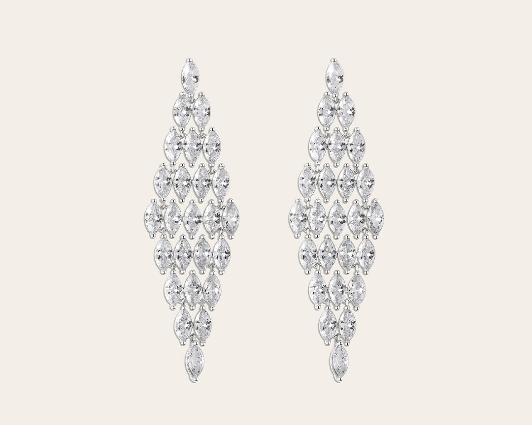 Les boucles d’oreilles Holly scintillent grâce à leurs rangées de zircons transparents, conçues pour capter chaque éclat de lumière à chaque mouvement.