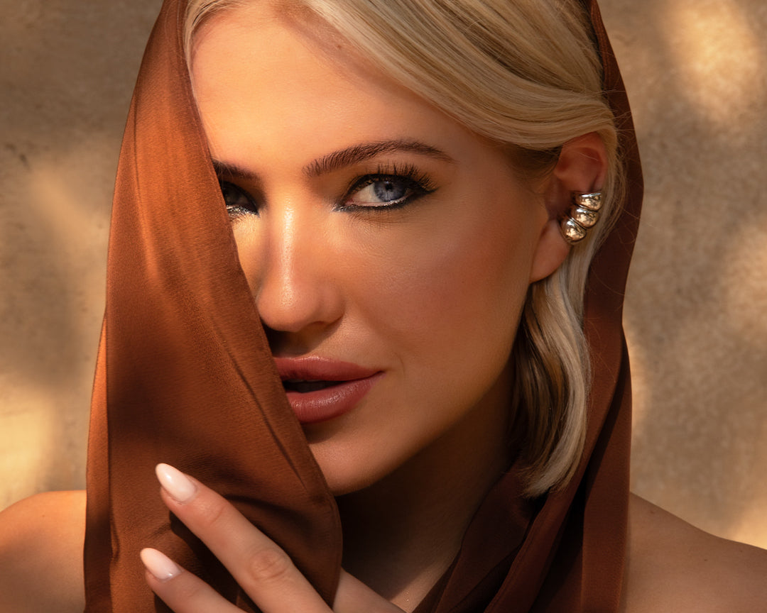 La collection de après-rémanque vous invite à un domaine de mes rêves et de mes fantasmes. Entrez dans la chaleur du désert, où de gros bijoux incarnent l'essence des sables dorés. Alimenté par mes ambitions audacieuses et inspirée par les horizons illimités de ce paysage rêveur.