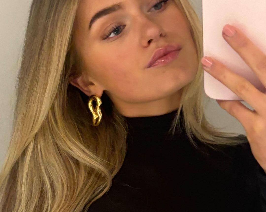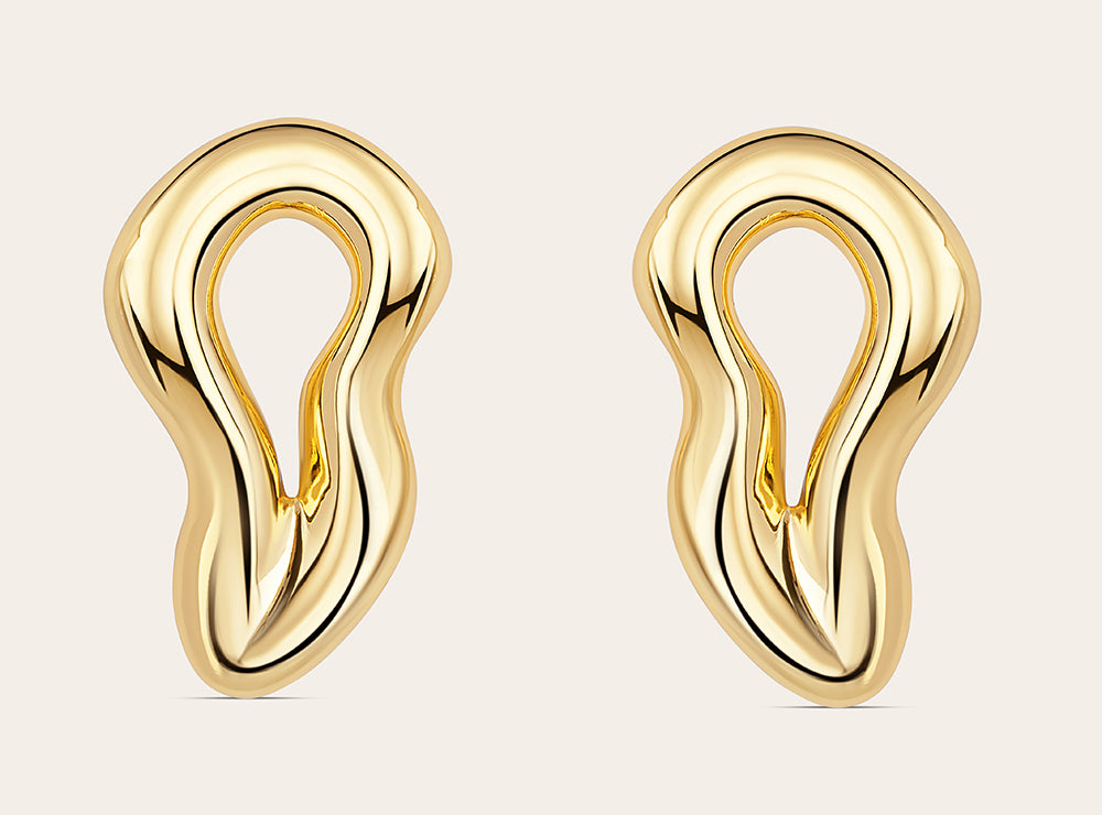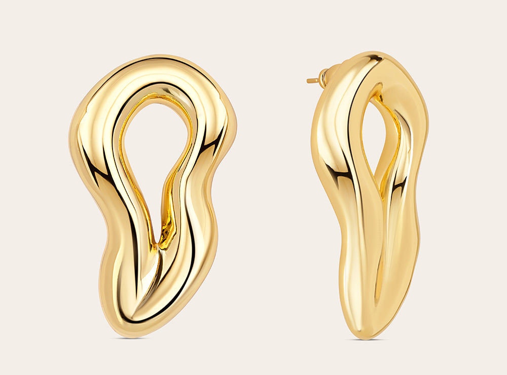 Deze vergulde oorbellen hebben een vloeiende vorm die is geïnspireerd op de ongedwongen stijl van een Italiaanse zomer. De natuurlijke rondingen vangen het licht prachtig op en geven je gezicht een stralende en warme gloed. Of je nu 's ochtends een espresso drinkt op een zonnig plein of op weg bent naar een zakelijke afspraak in de stad, deze oorbellen zijn de perfecte keuze. Van een rustig dagelijks ritueel tot een entree die geen aankondiging behoeft, deze oorbellen geven je elke dag een vleugje luxe.