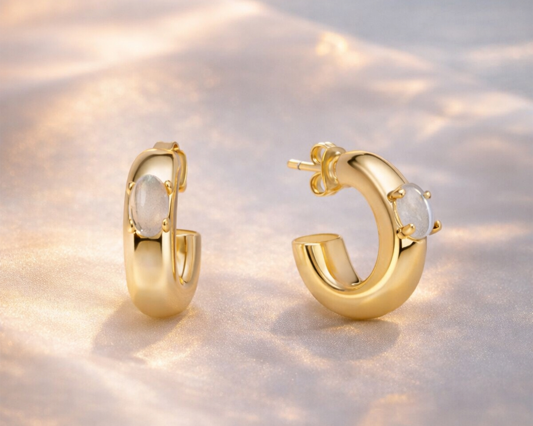 Deze verfijnde hoop oorbel is voorzien van labradoriet, een edelsteen die bekendstaat om haar beschermende en intuïtieve energie. Labradoriet wordt vaak geassocieerd met transformatie en helpt je energie te beschermen, terwijl het zelfontdekking en innerlijke kracht stimuleert.