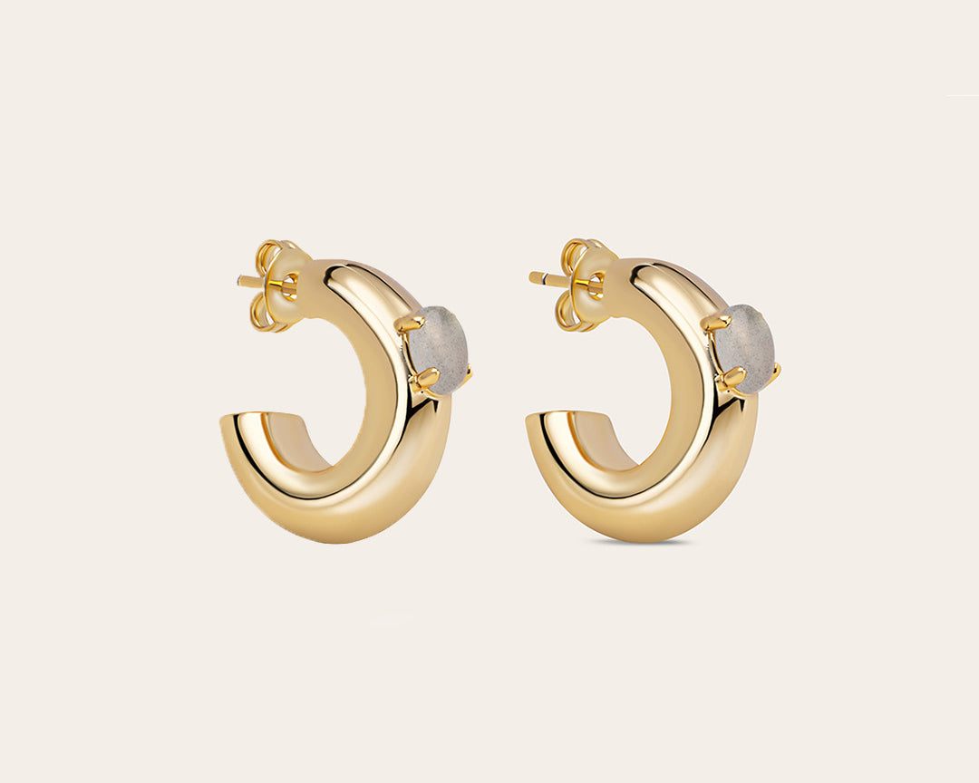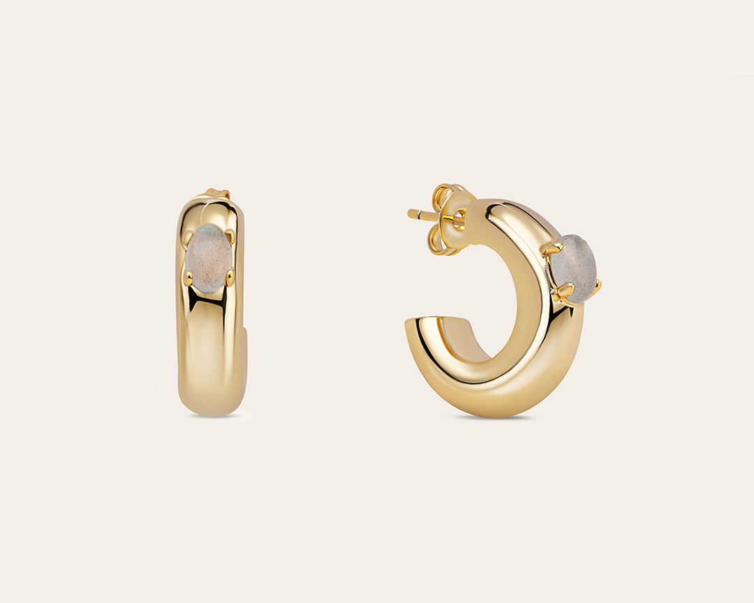 De Chunky Labradorite oorringen – gold plated