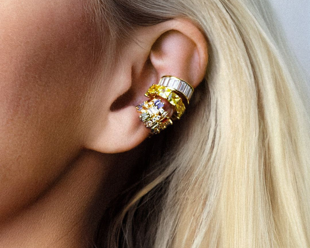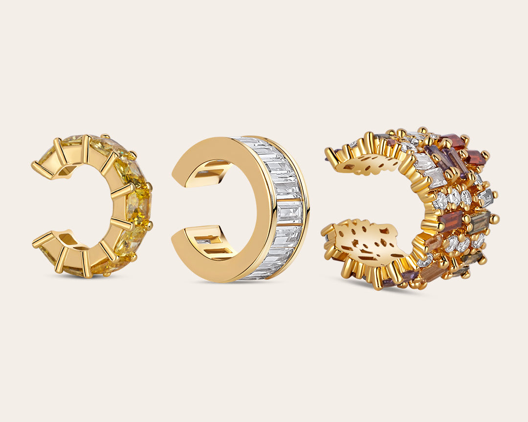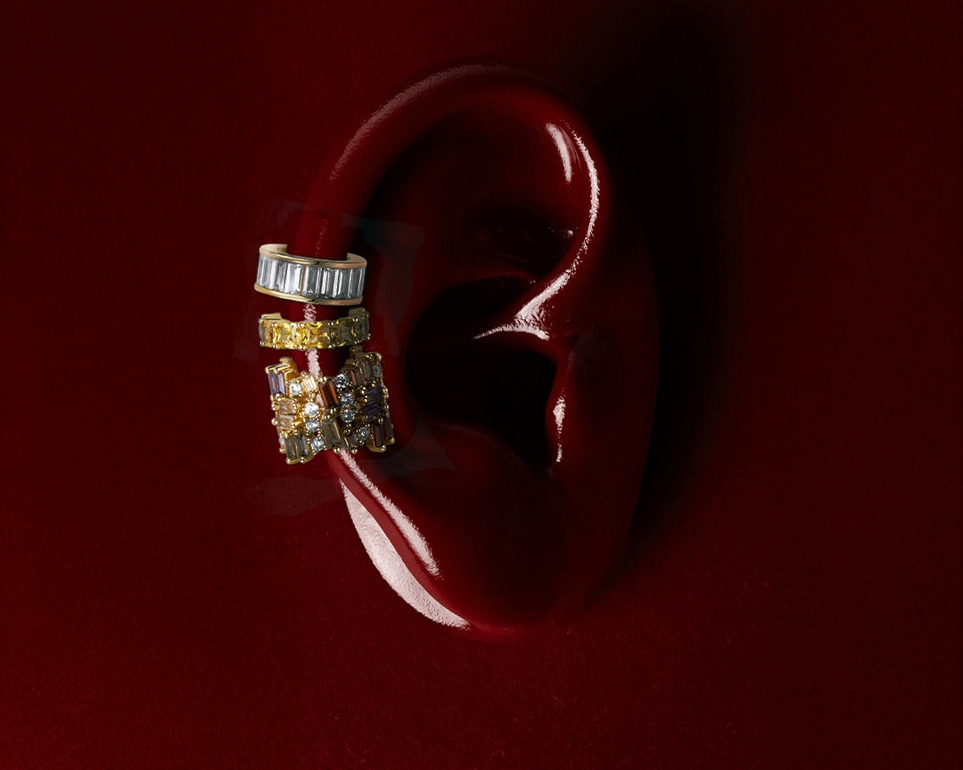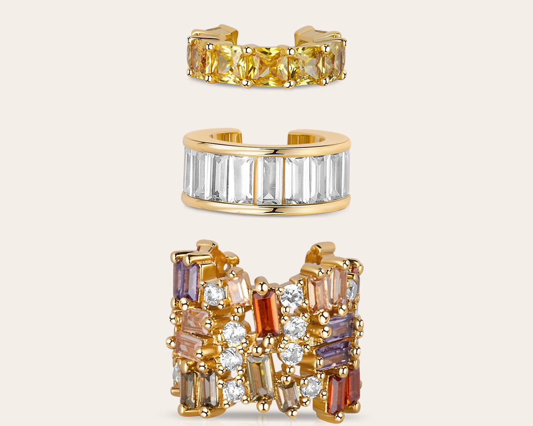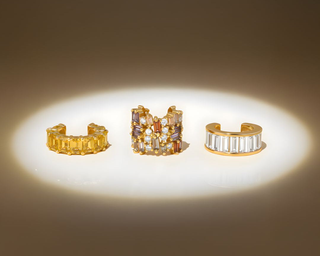 Een champagnekleurige ear cuff set ontworpen voor het feestseizoen. Mix & match het trio voor een heldere, feestelijke holiday glow.