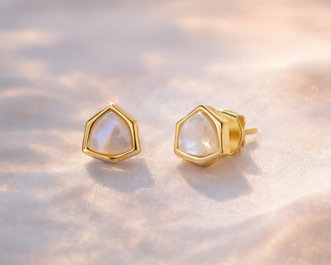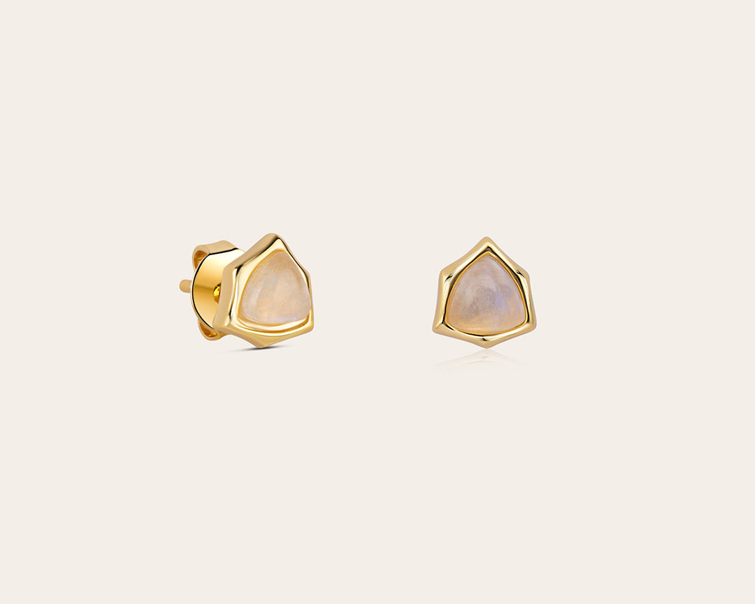 Deze delicate stud oorbel is voorzien van maansteen in een zacht gevormde zetting, die het licht vangt met een subtiele, natuurlijke gloed. Maansteen wordt vaak geassocieerd met kalmte, intuïtie en zachte kracht, waardoor het een edelsteen is die zowel aardend als verlichtend aanvoelt.
