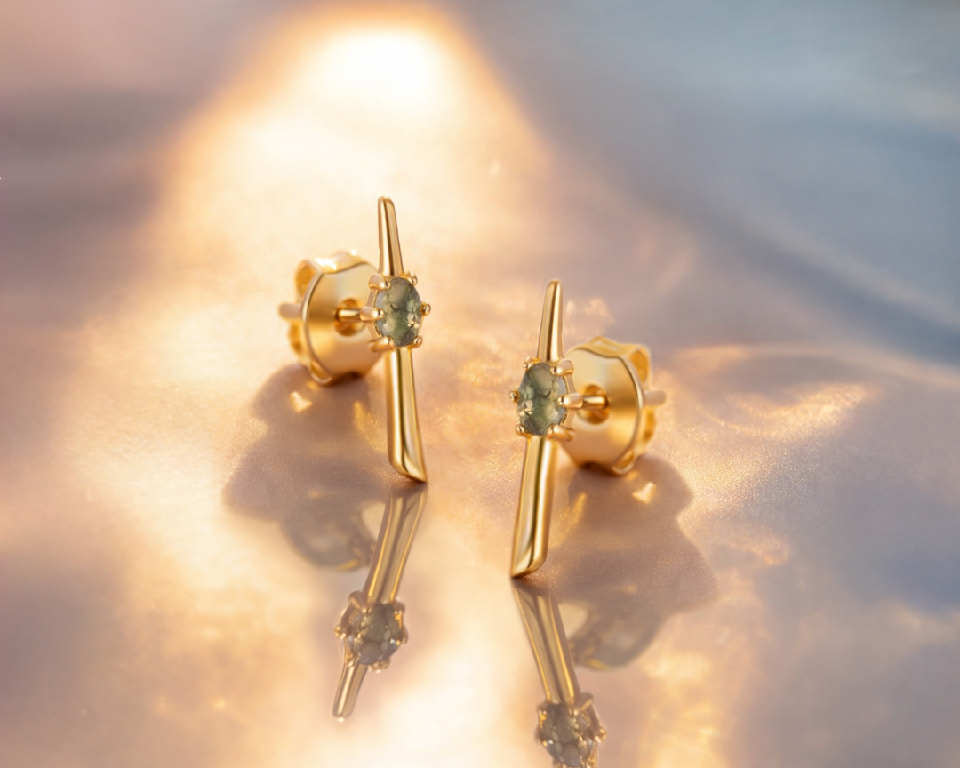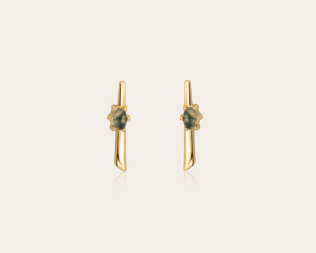De Moss Agate Force Studs zijn voorzien van mosagaat, een edelsteen die bekendstaat om haar aardende en kalmerende energie. Mosagaat wordt vaak geassocieerd met balans, helderheid en een diepe verbinding met de natuur, en helpt je te vertragen en je meer gecentreerd te voelen.